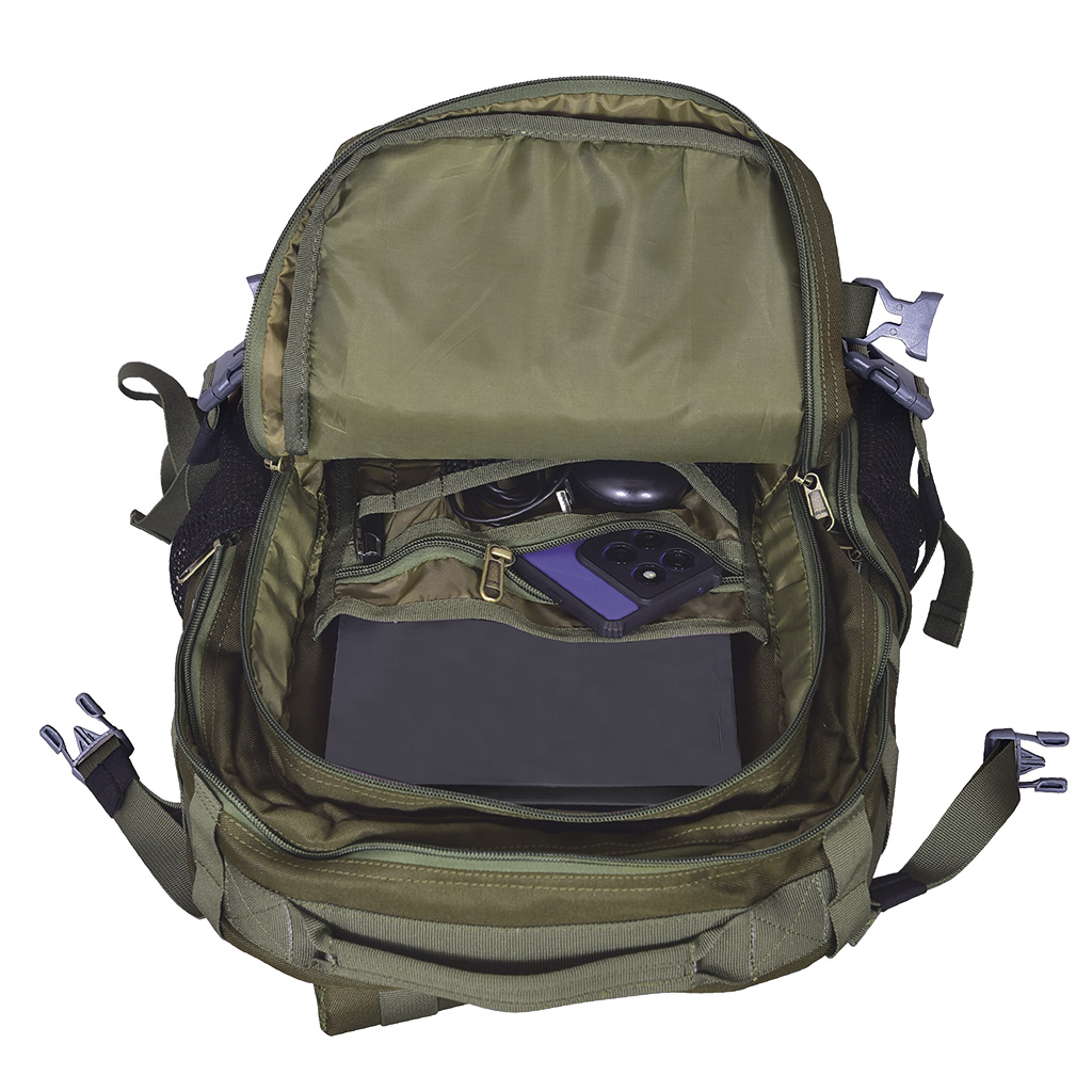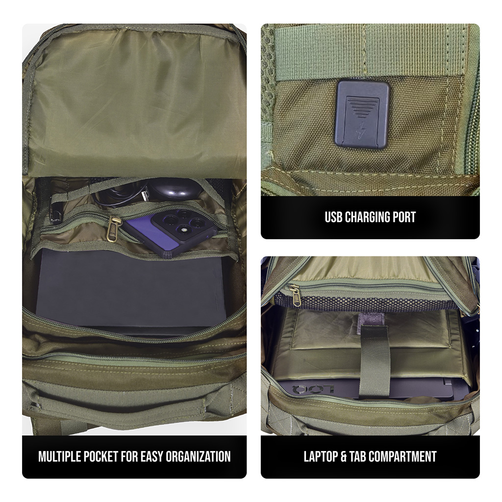 - MOLLE Loops : External modular webbing for customizable gear attachment.