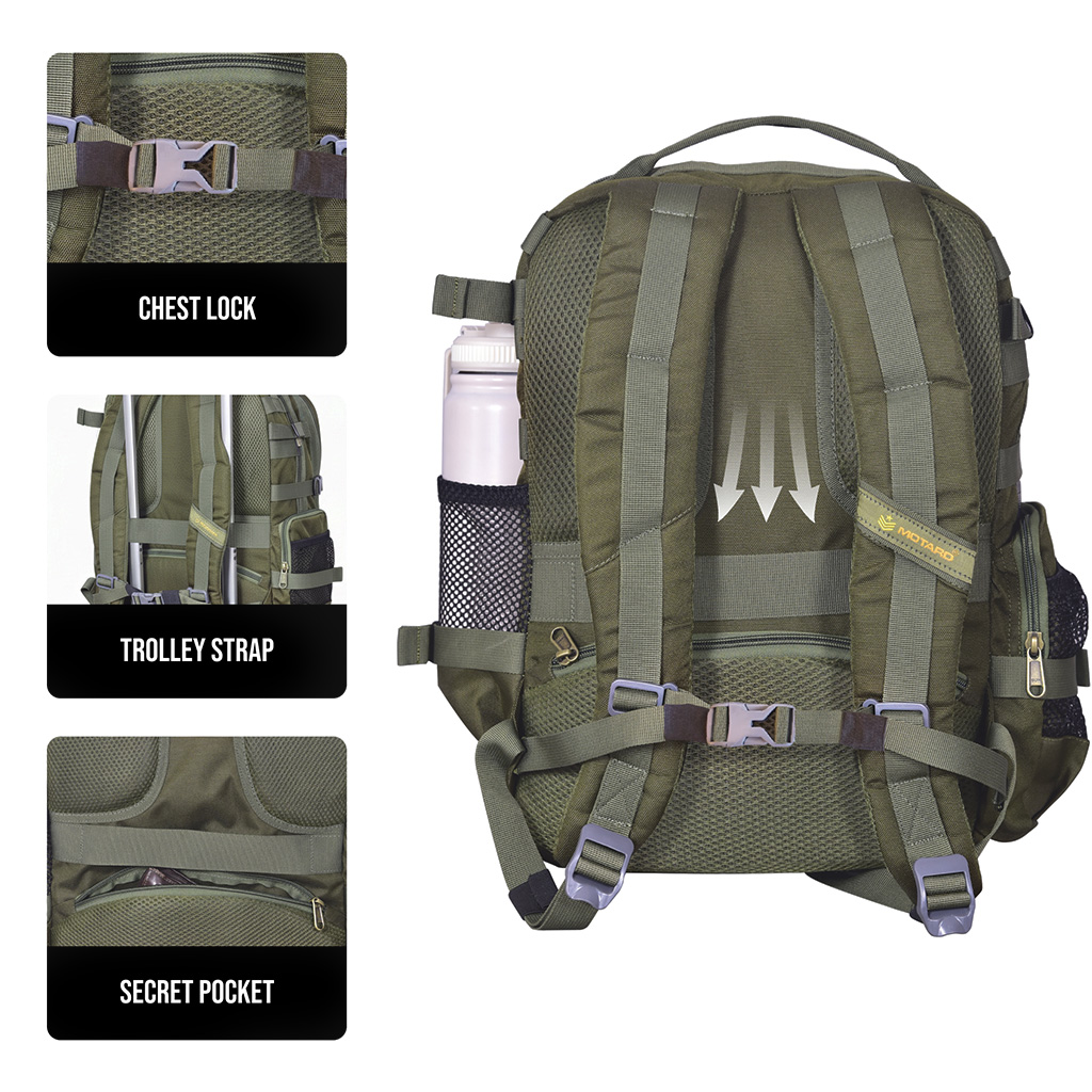 The Motard Tactical Backpack is built for performance and resilience. Its design draws from a military-inspired aesthetic, resulting in a rugged, high-utility pack that handles tough conditions without fail. Constructed from heavy-duty 900D PU Polyester, this bag offers superior resistance to tearing, abrasion, and water, keeping your gear safe on any exploration. The MOLLE loop system covers the exterior, providing full modularity to customize your loadout with attached tools and extra pouches. For organization and quick access, the Tactical Backpack features two dedicated side pockets: one specifically for your Water Bottle and another Side Pocket for quick access to essentials like gloves or snacks. It is also tech-ready with an essential USB PORT for charging devices and a secure Laptop Compartment. Comfort is key on long journeys, which is why the bag includes an Airflow Back Panel designed to maximize ventilation and prevent heat build-up. Complete with an internal Organizer and a reinforced carry handle, the Motard Tactical is your reliable, highly organized pack for any tough adventure.