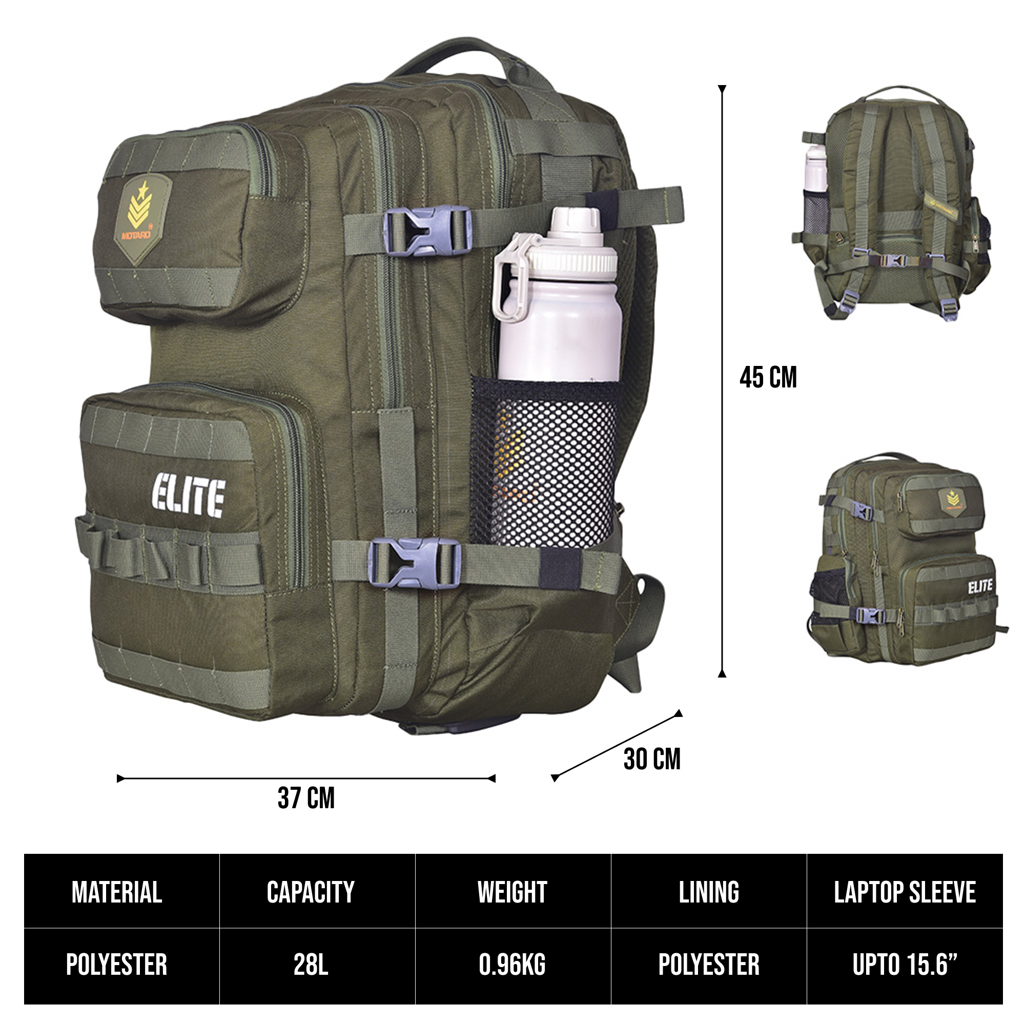 - 900D Fabric : Heavy-duty, durable, and water-resistant PU Polyester construction.