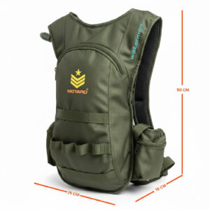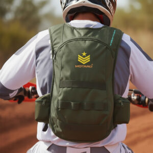 The MOTARD Waterman Hydration Backpack is built from rugged 900D PU polyester with tactical MOLLE webbing. It features a stable, slim fit, and a 3-liter BPA-free bladder with a quick-access bite valve for reliable, organized hydration on any long-distance ride or trail.